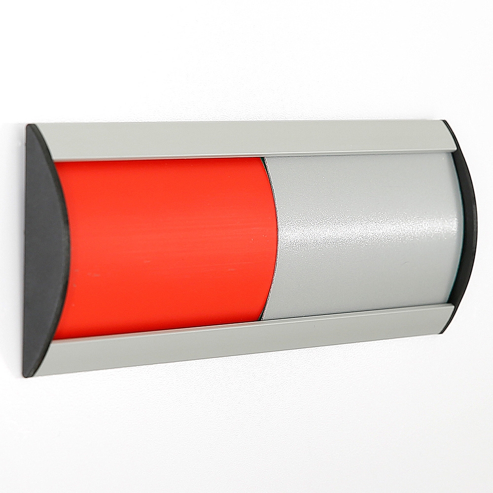 • Das Schild verfügt über eine praktische Schiebetürfunktion, die es einfach macht, anzugeben, ob der Raum besetzt (rot) oder frei (grün) ist.