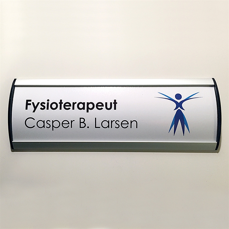 Türschild aus eloxiertem Aluminium mit schwarzen Kunststoffenden. Dank des APET-Kunststoffs auf der Vorderseite können Nachrichten schnell und einfach geändert werden. Wird mit doppelseitigem Klebeband und Saugnapf geliefert.