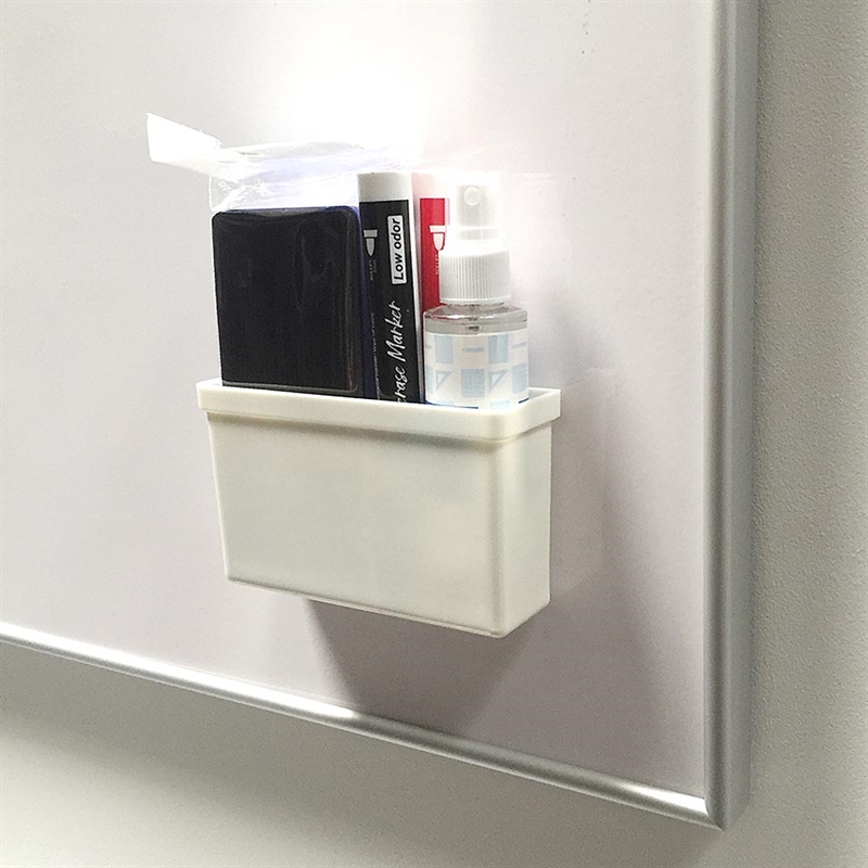 Das White Board Starter Kit ist ein komplettes Set, das alles enthält, was Sie benötigen, um die Nutzung Ihres Whiteboards zu optimieren. Dieses praktische Set enthält einen magnetischen Kunststoffhalter, der an Whiteboards gehängt werden kann und bis zu 1 kg tragen kann. Darüber hinaus ist der Halter auch für die Wandmontage geeignet. Das intelligente Design unserer Halter ermöglicht es Ihnen, all Ihre Whiteboard-Zubehörteile griffbereit zu haben, während es Ihren Arbeitsbereich sauber und ordentlich hält.