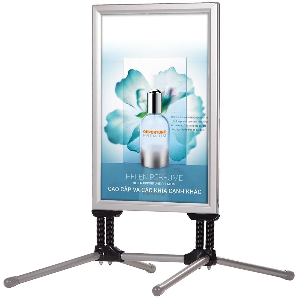 Das Kundenstopper ist mit 40 mm Aluminium-Klapprahmen konstruiert, die im Gehrungsschnitt für ein fertiges, professionelles Aussehen gefertigt sind. Die Klapprahmen haben schön abgerundete Ecken, was ein sauberes und ordentliches Aussehen verleiht.