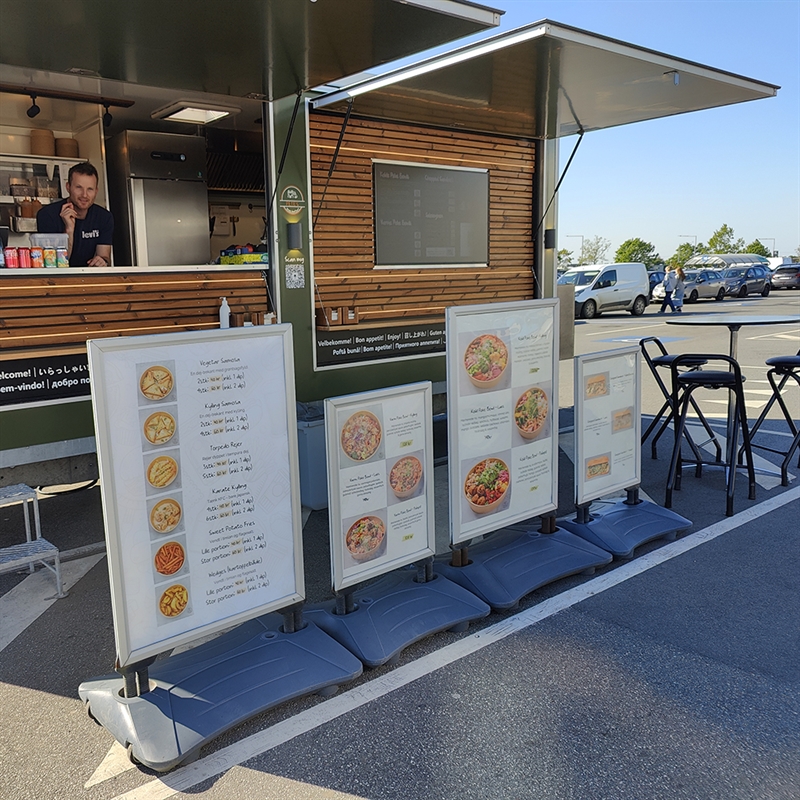 • Hier erhalten Sie ein stabiles Kundenstopper, das problemlos im Regen und Wind draußen stehen kann.