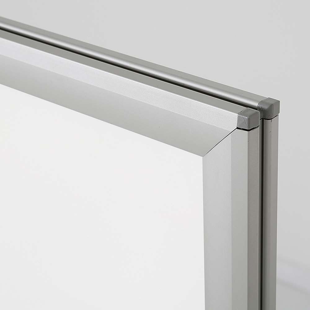 • Das Schild verfügt über einen 33 mm Aluminium-Klapprahmen mit Gehrungsschnitt und schönen abgerundeten Ecken. Die Frontplatten sind aus antireflexivem APET gefertigt.