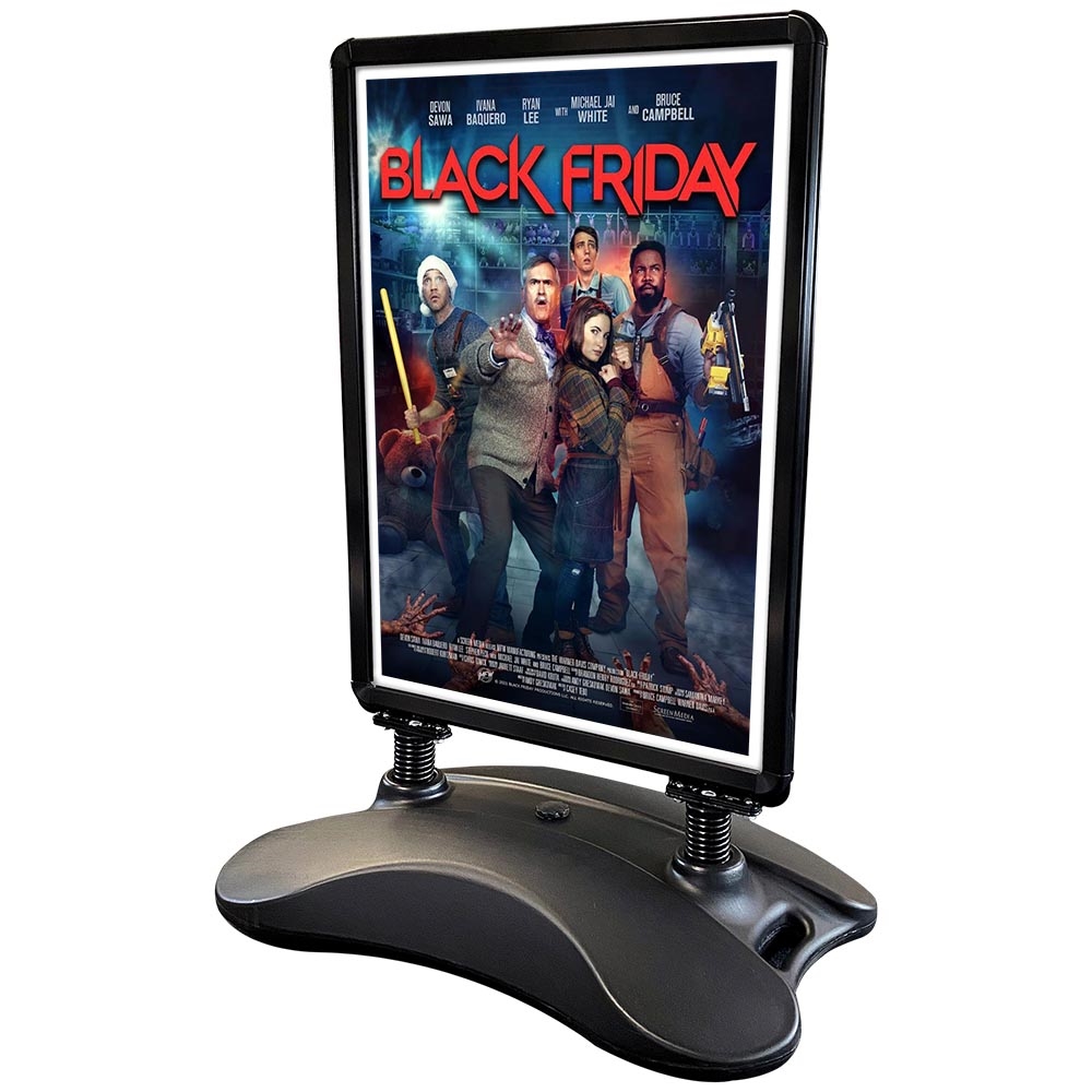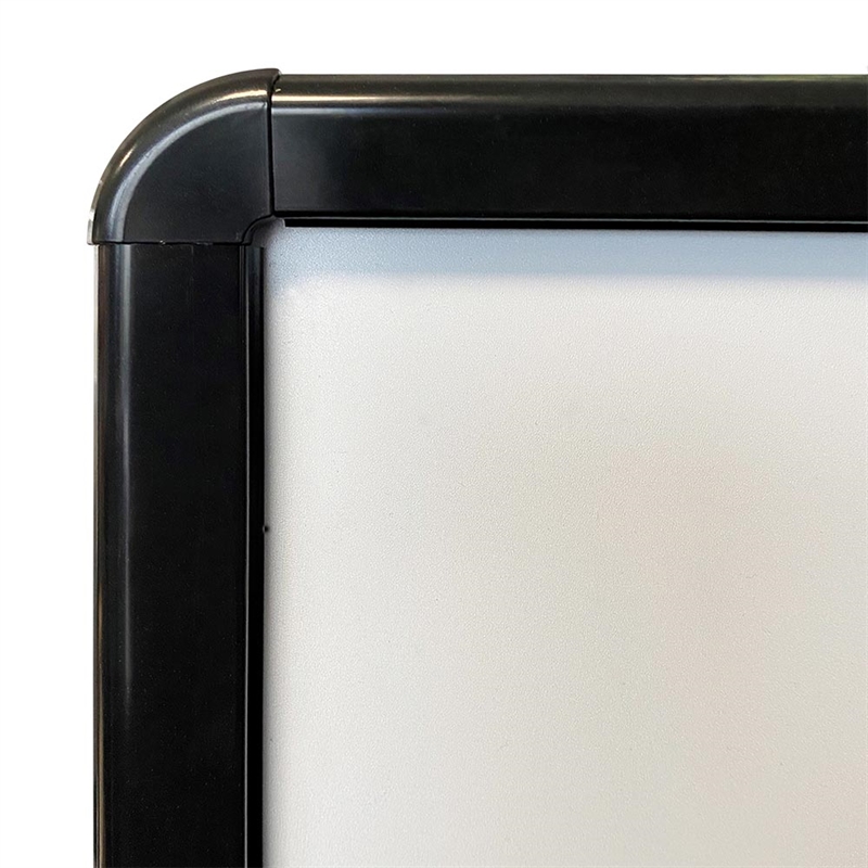 • Das schwarze Kundenstopper verfügt über einen 32 mm Aluminium-Klapprahmen mit schönen abgerundeten Ecken.