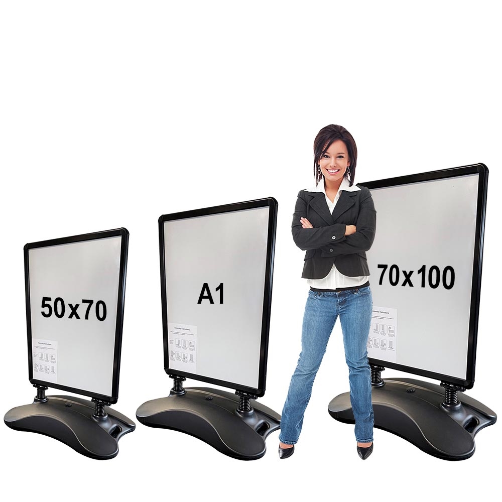 • Wetterfestes Wind-Schild Waterbase Basic Kundenstopper mit Federn, ideal, um die Aufmerksamkeit der Kunden auf der Straße auf Ihren Laden zu lenken.