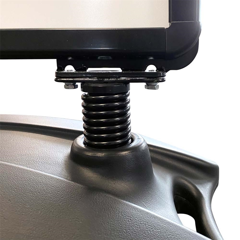 • Der stabile Fuß, auf dem das Schild montiert ist, besteht aus schlagfestem Kunststoff und kann mit Wasser oder Sand gefüllt werden, um eine wirklich gute Stabilität zu gewährleisten. Im Winter kann Frostschutzmittel nachgefüllt werden, wenn Wasser im Fuß gefriert und ihn beschädigen könnte.