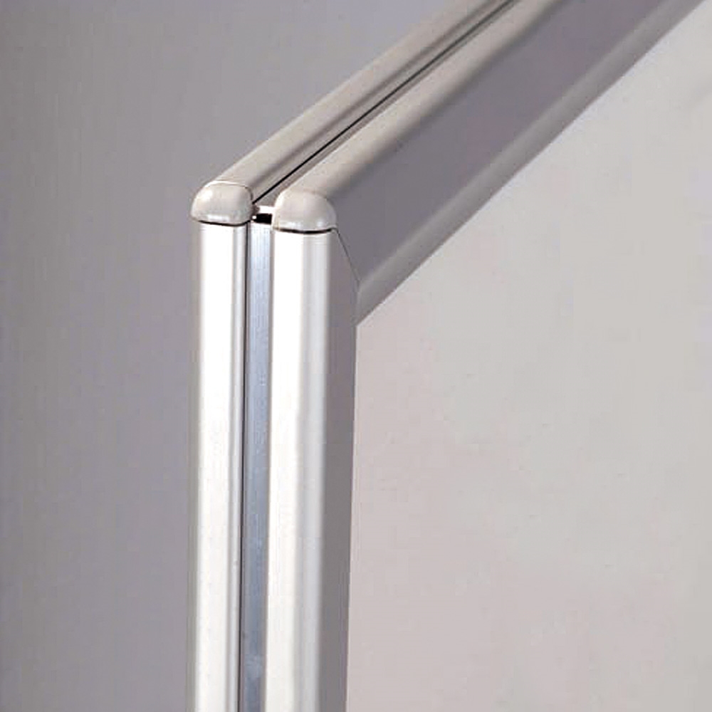 • Wetterfestes Außensandwicheinsteckschild mit 40 mm Aluminiumklapprahmen und antireflex APET-Frontplatte.