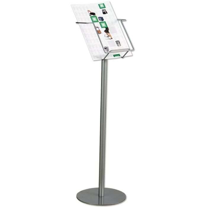 • Stabiles Design: Mit einem schweren, runden Fuß von 23,5 cm Durchmesser gewährleistet dieser Prospekthalter Stabilität und Langlebigkeit.