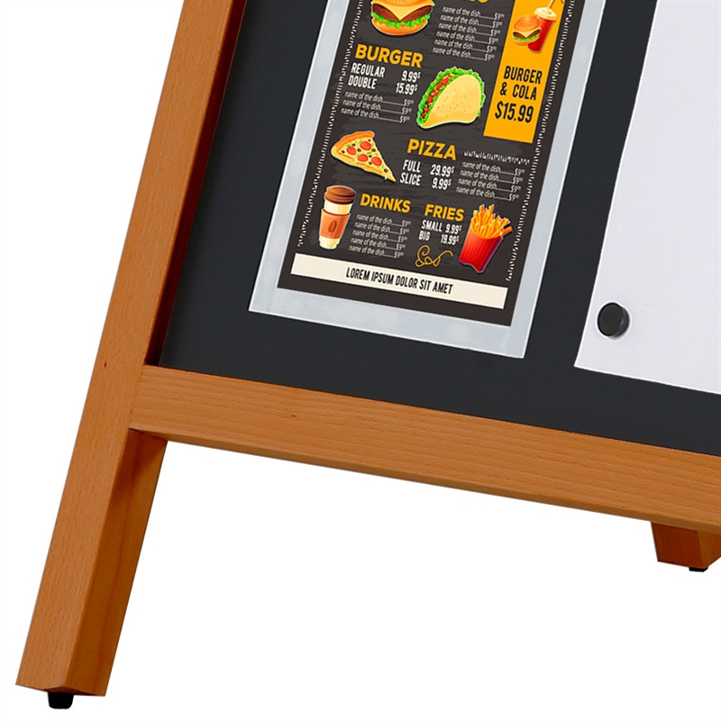 Die Gesamtabmessungen des Schildes betragen 67 x 95 x 70 cm, und die Tafel misst 59 x 77,5 cm. Mit einem Gewicht von 14,2 kg ist das Schild robust und stabil, aber dennoch relativ leicht zu handhaben.